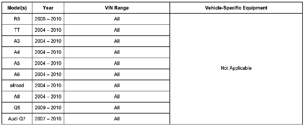 This TSB is informational only and not applicable to any Audi warranty.