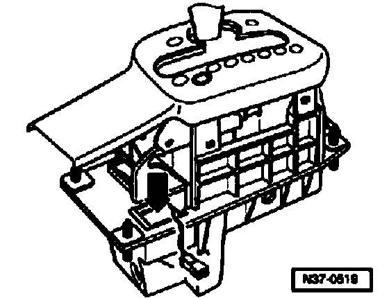 Location: The selector lever lock solenoid is located in the selector lever housing -arrow-.