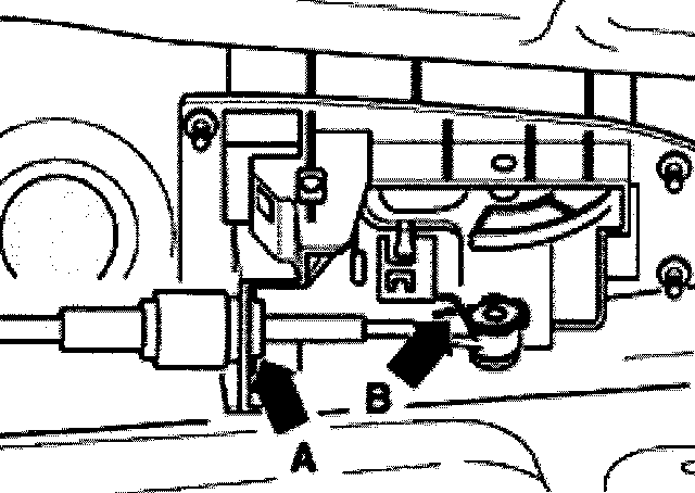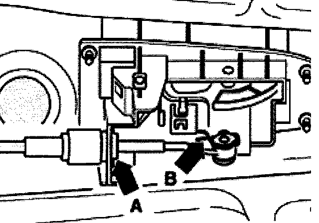 - Press ends of camp -B- together and attach to end of selector lever cable.