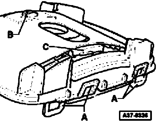 In case of malfunction first check whether the magnet on slide cover -C- is properly mounted, if necessary replace slide cover. Only replace symbol insert with integrated printed circuit after checking wiring. For vehicles with Tiptronic steering wheel also the buttons and their wiring connections on the steering wheel must be checked.