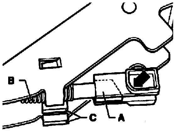 ^ Check whether pull rod slides in both guides -C- of selector lever.