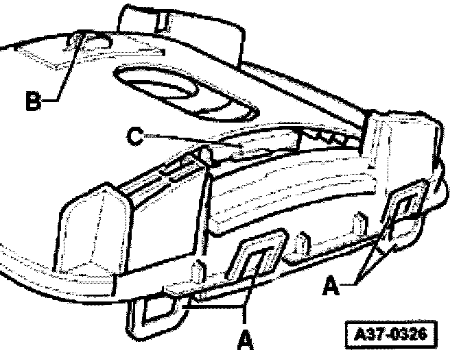 In case of malfunction first check whether the magnet on slide cover -C- is properly mounted, if necessary replace slide cover. Only replace symbol insert with integrated printed circuit after checking wiring. For vehicles with Tiptronic steering wheel also the buttons and their wiring connections on the steering wheel must be checked.