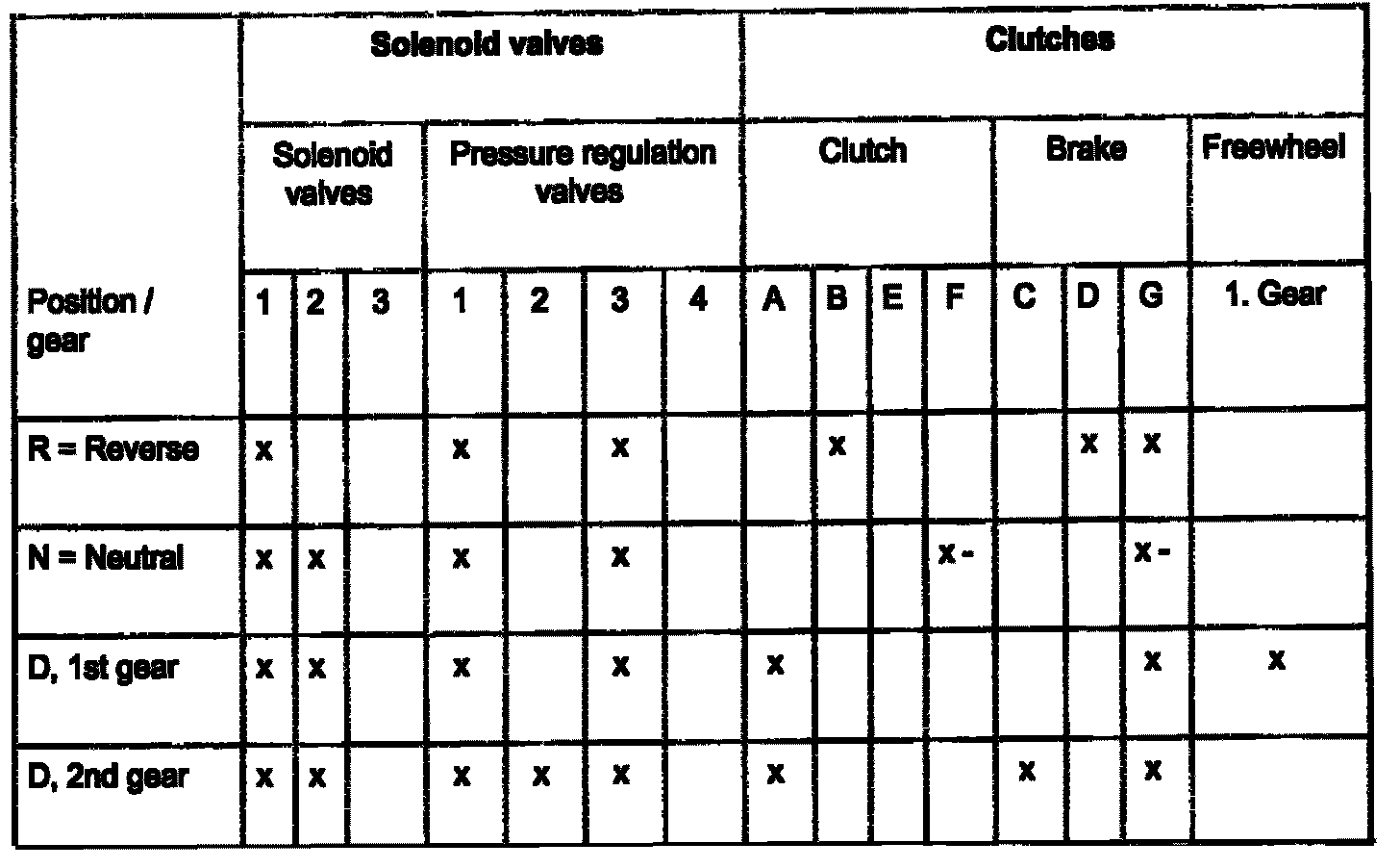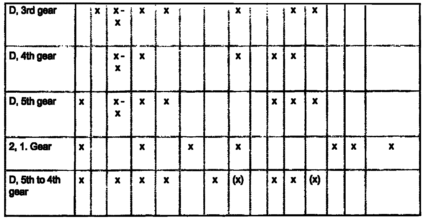 - When dealing with problems relating to poor acceleration and performance or general malfunctions, the chart indicates which selector elements are actuated in the various gears. This should help to identify the selector elements that are not working properly.