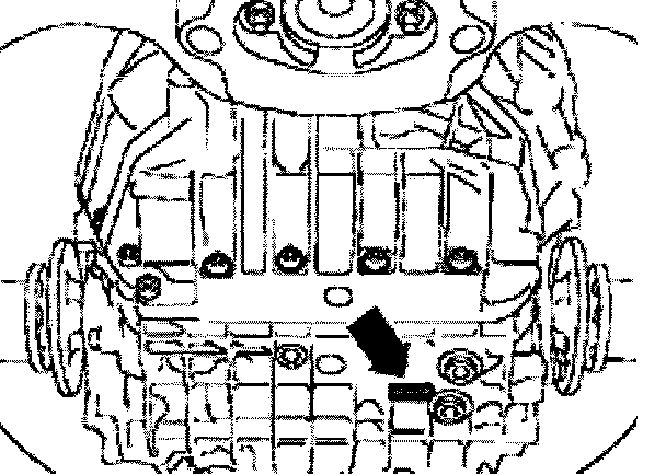 The code letters and serial number of the transmission are stamped on the underside of the transmission housing -arrow-.