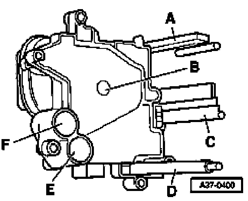 Component location: The hydraulic unit is bolted to the rear of the transmission. The Transmission Control Module (TCM) -J217- is bolted directly to the hydraulic unit.