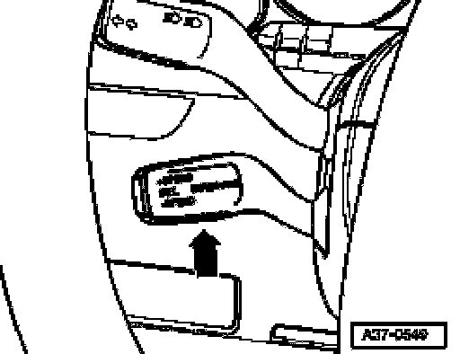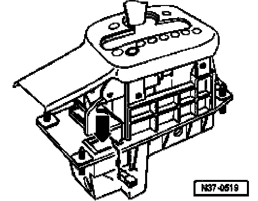 Component location: The shift lock solenoid is located in the shift control mechanism -arrow-.