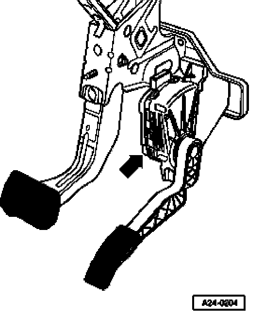 Component location: The brake light switch -arrow- is located on the pedal cluster.