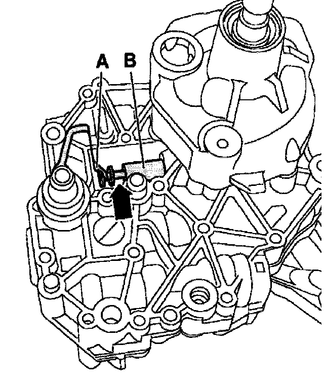 - Check cover to make sure that it is fitted correctly. Locating lug -B- must be engaged in locating hole in transmission.