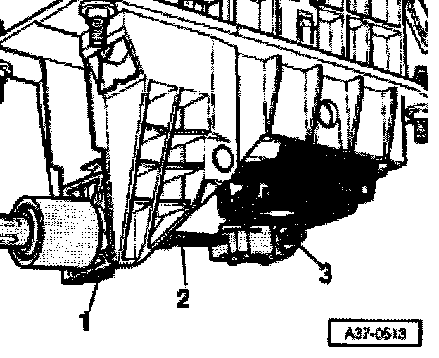 - Loosen mounting parts -3- and -4- and remove rear part of noise insulation