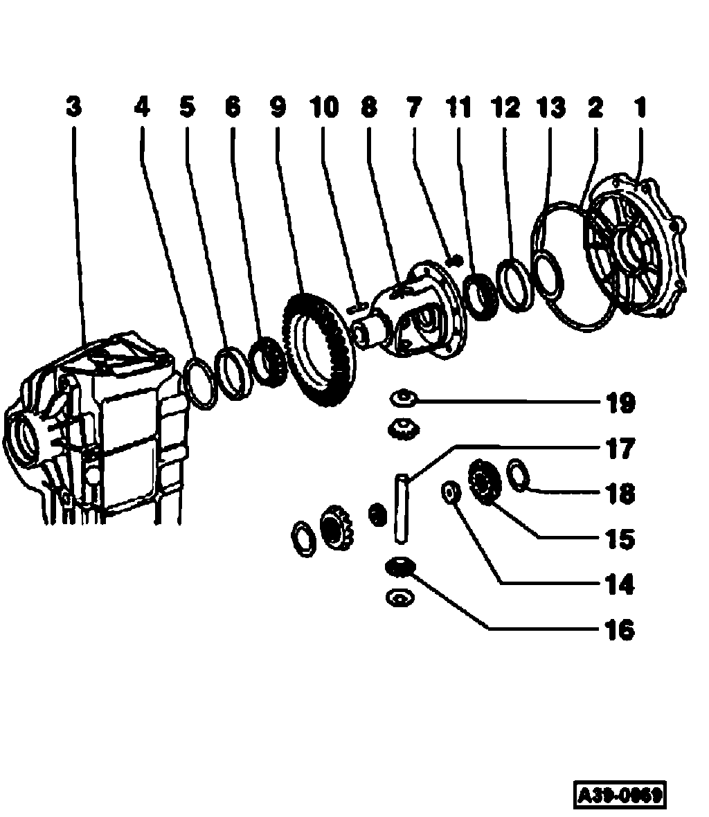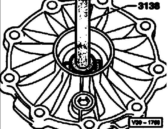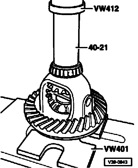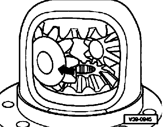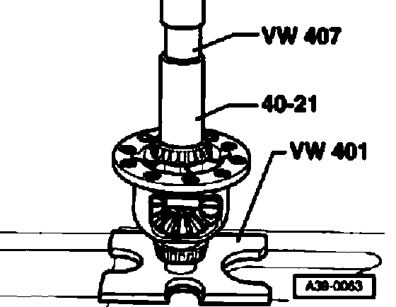 Note: The adjustment is also correct when no more play is present and the differential bevel gears can just barely be rotated.