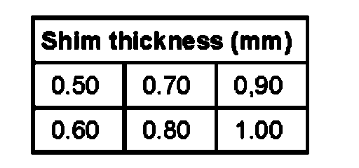^ Determine adjustment shims according to table. For Part numbers; Refer to Parts Supplier.