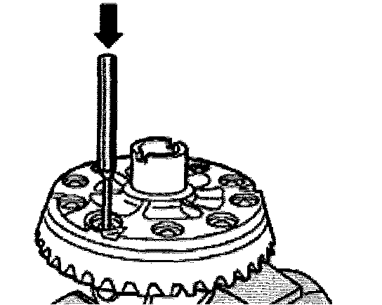 - Push large differential bevel gears in direction of arrow and check play.