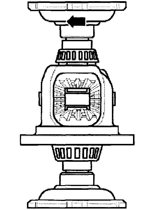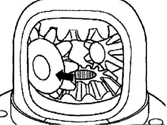- Install small differential bevel gears at 180° from their final position and rotate into place (arrow).