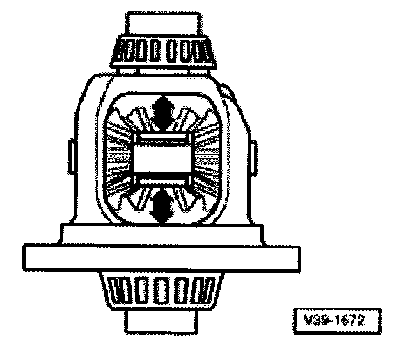Note: The adjustment is also correct when no more play is present and the differential bevel gears can just barely be rotated (arrow).