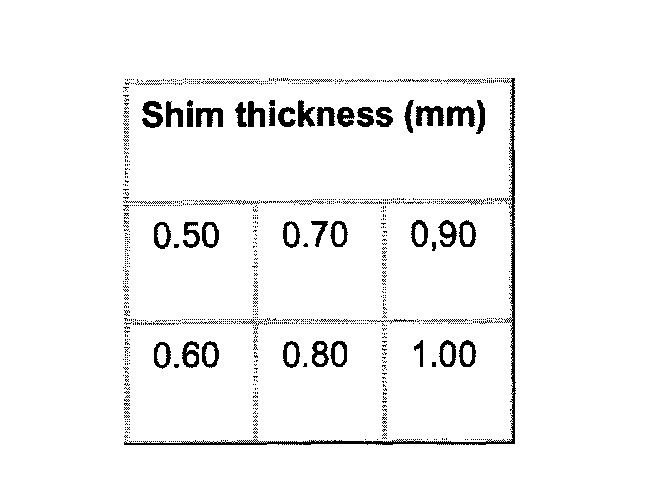 - Determine adjustment shims according to table.
