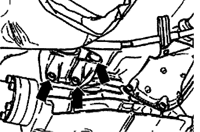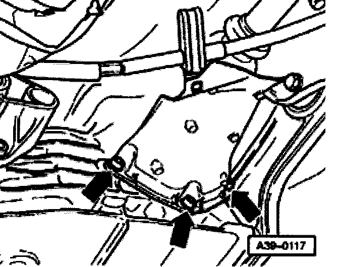 - Remove socket head bolts (arrows) at rear of subframe.