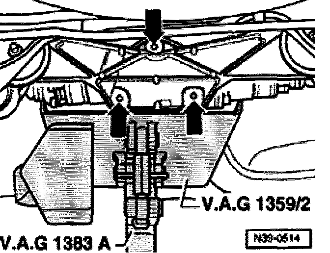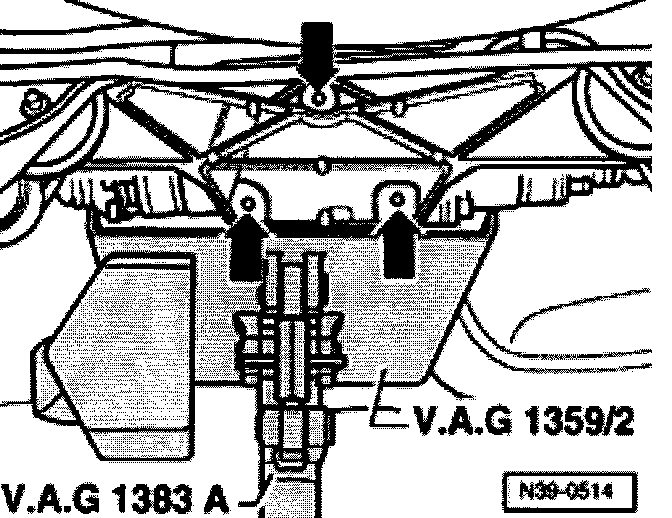 - Place VAG1383A engine/transmission hoist with 1359/2 transmission support under final drive and support final drive.