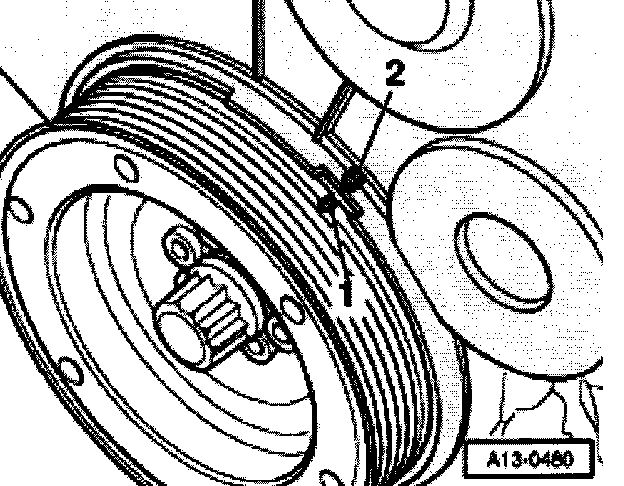 - Turn crankshaft via central bolt of toothed belt gear in direction of engine rotation to TDC Cyl. 3 marking.