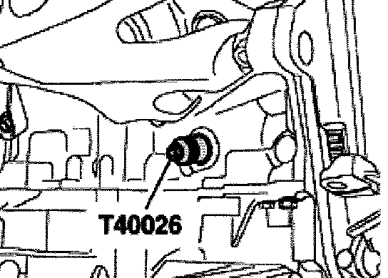 - Remove T10026 alignment bolt and thread sealing plug of TDC marking with new O-ring into cylinder block.