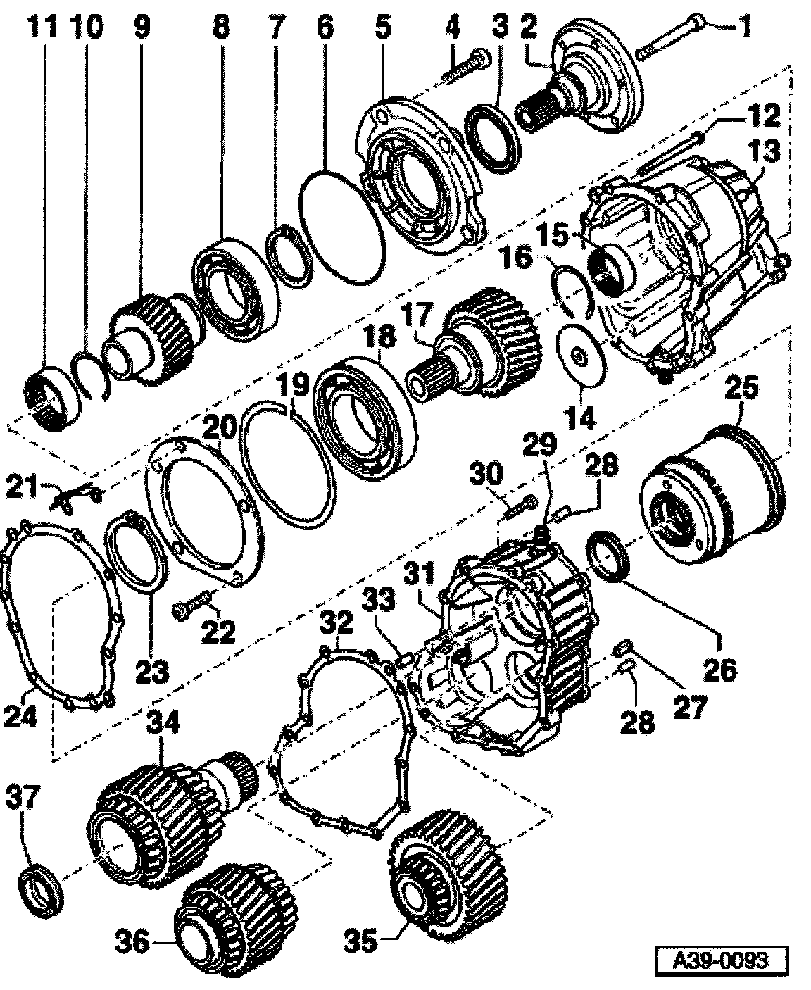 ^ To remove and install disassemble differential, item 13, and remove together with items 18, 19, and 23