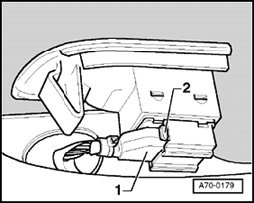 - Press retainer tab - 2 - and disconnect connector - 1 -.