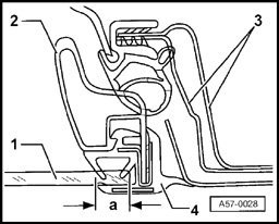 NOTE: The edge of door window - 1 - must run 9 mm (0.354 in.) (distance - a -) inside seal - 4 - for door component carrier - 3 -.