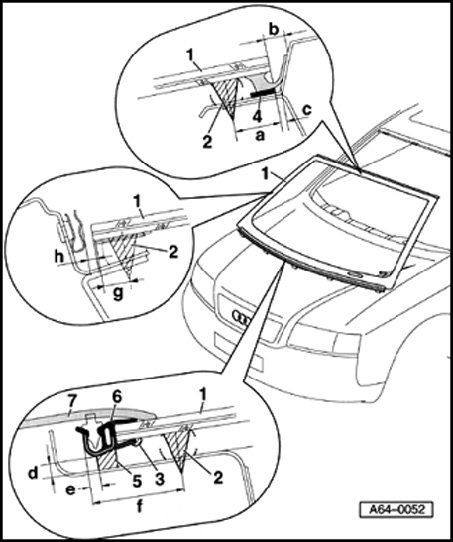 - Press new windshield surround onto edge of windshield in center and secure again with adhesive DH 009 100 03 (small cartridge).