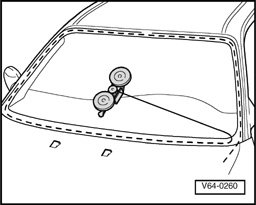 - Pull cutting cord through adhesive sealing material into inside of vehicle using awl.