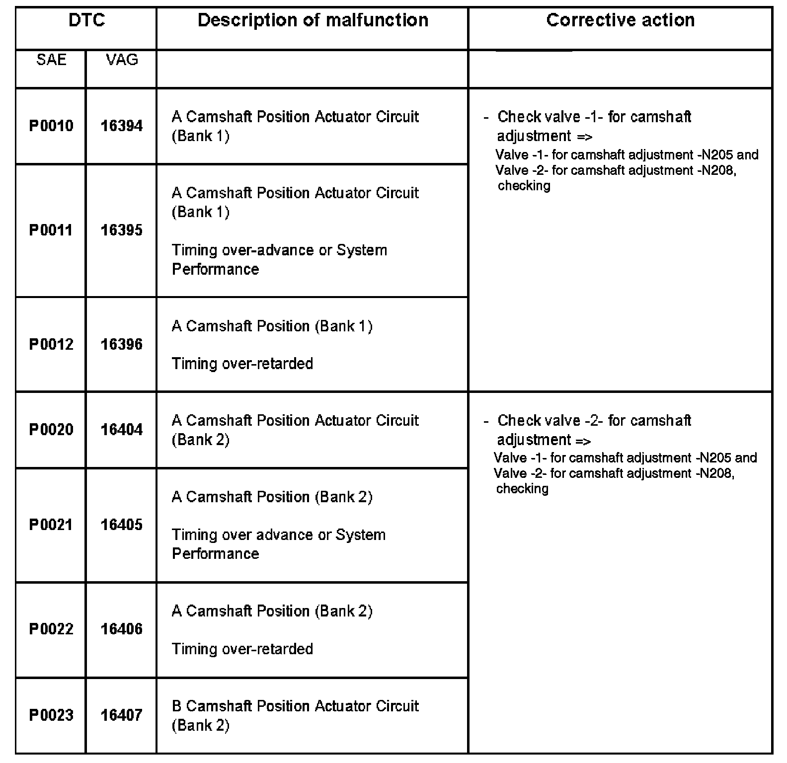 DTC P0010 - P0023: