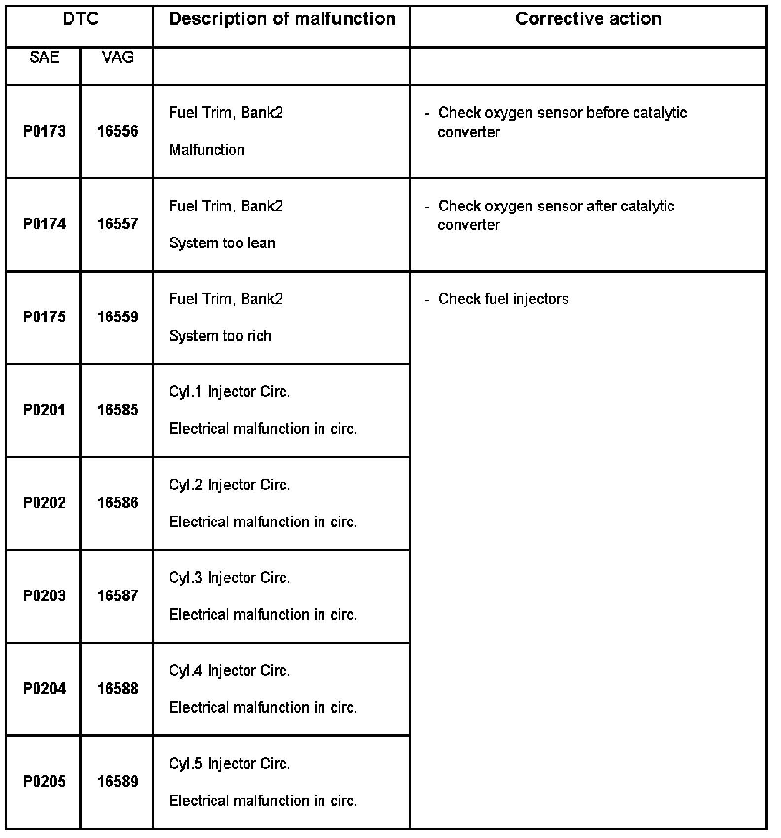 DTC P0173 - P0205: