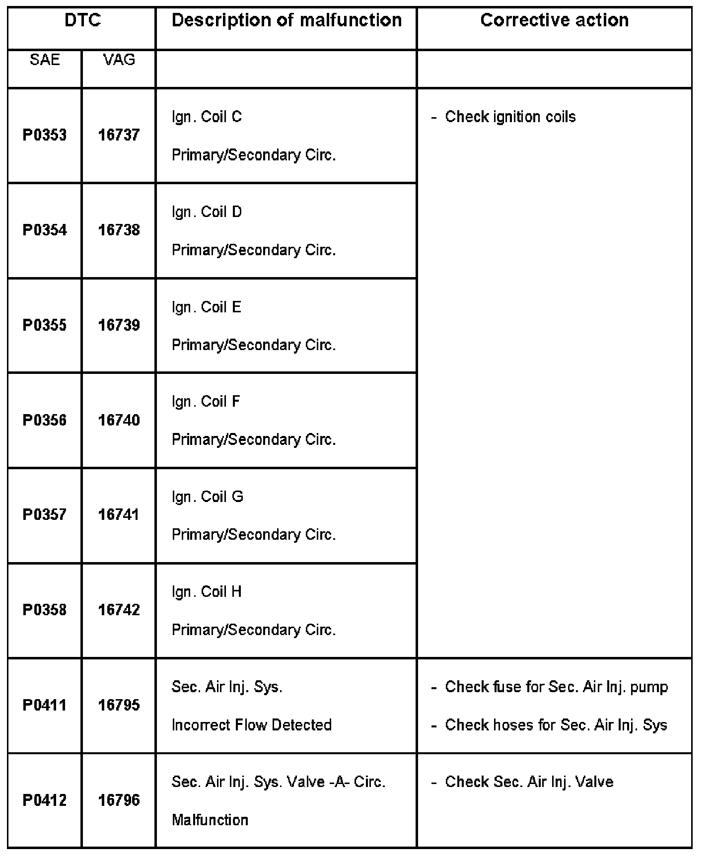 DTC P0353 - P0412:
