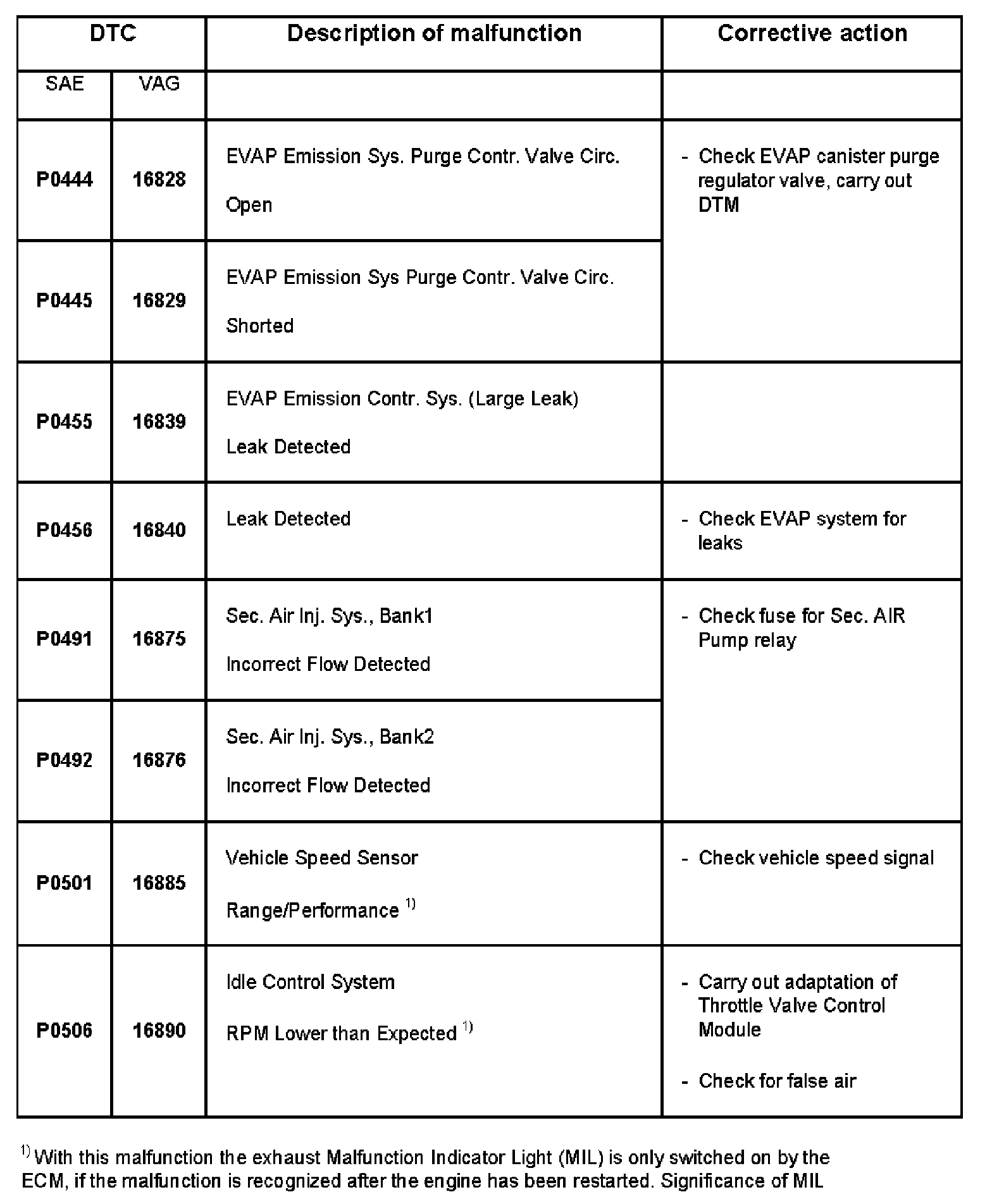 DTC P0444 - P0506:
