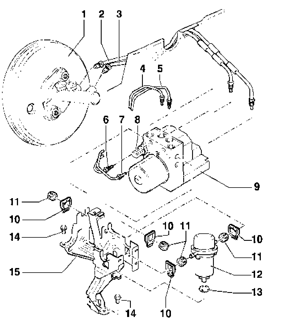 ^ Hydraulic unit to left-rear brake caliper