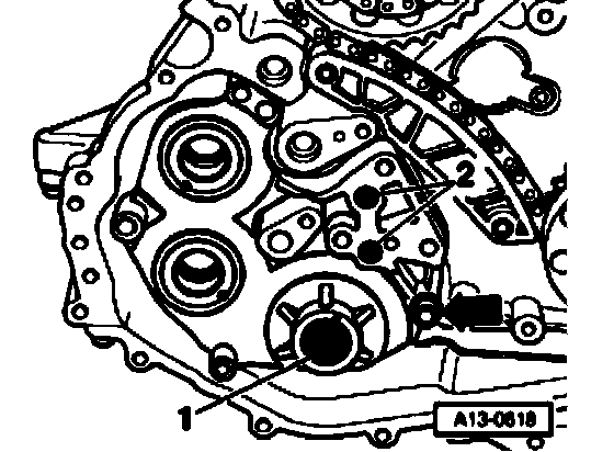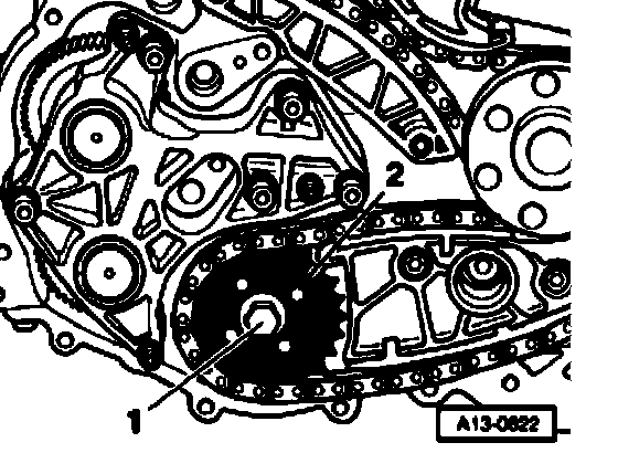 - Loosen bolt -1- at drive sprocket -2- a few turns.