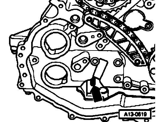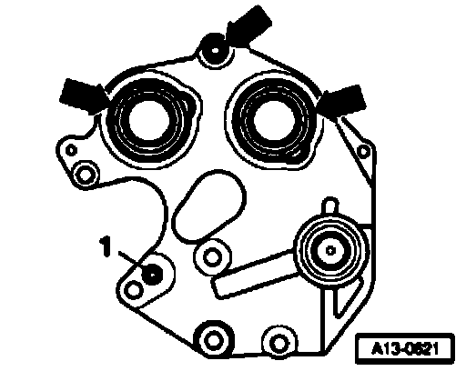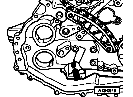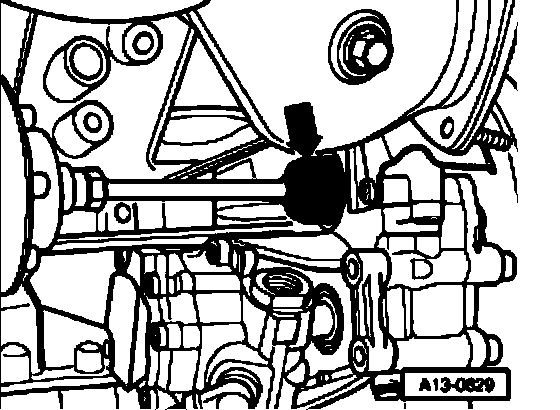 - Insert drive shaft (arrow) for oil pump in guide at oil pump.