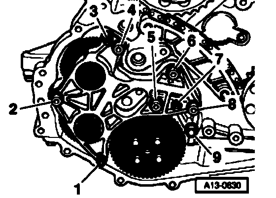 - Screw out bolts -1- to -8,