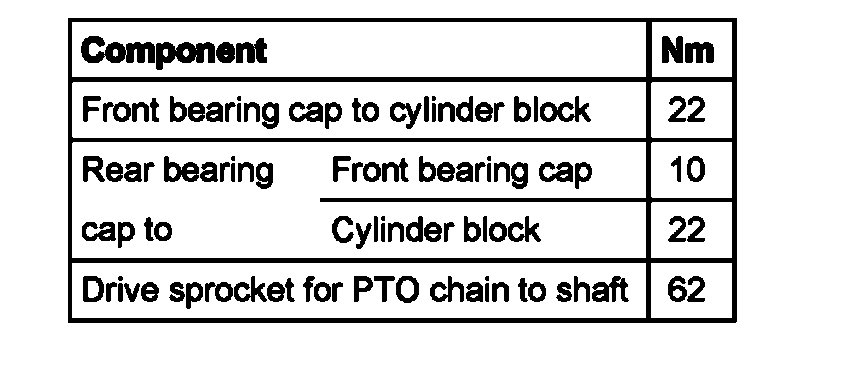 - Tighten drive sprocket for PTO chain to 62 Nm.