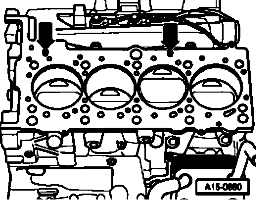 ^ No oil or coolant must be allowed to remain in blind holes for cylinder head bolts in cylinder block.