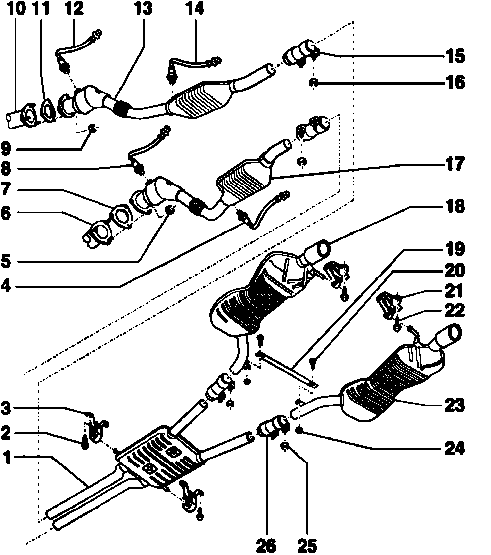 13. Front exhaust pipe with primary and main catalytic converter