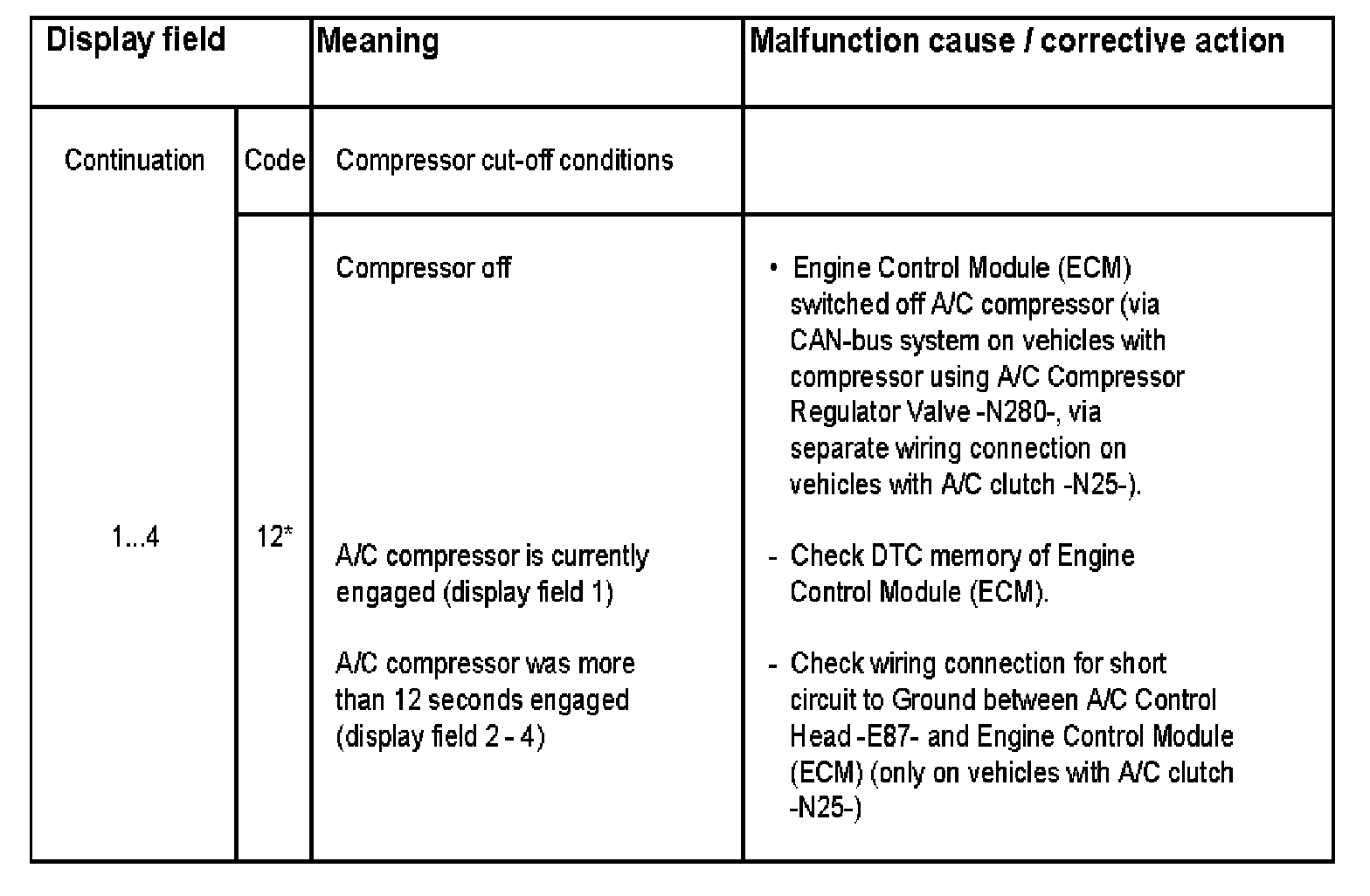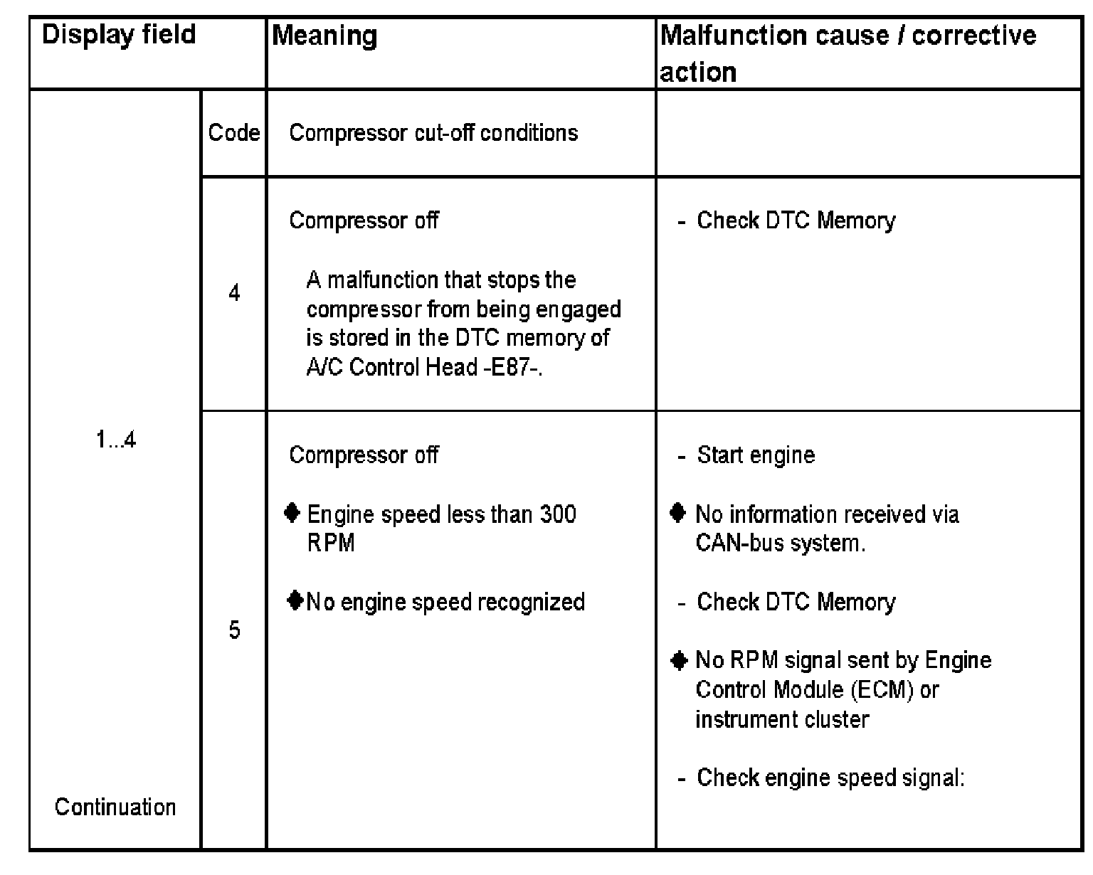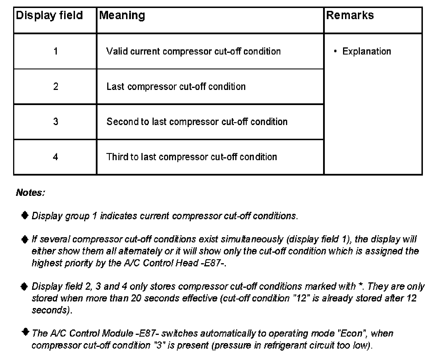 Interpretation of compressor cut-off condition for display field 1 - 4:Display Field 1 - 4, Part 1: