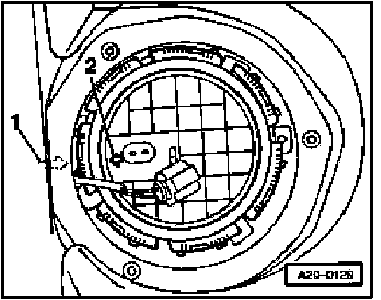 - Remove fuel level sensor 2 together with seal slightly out of opening in tank.