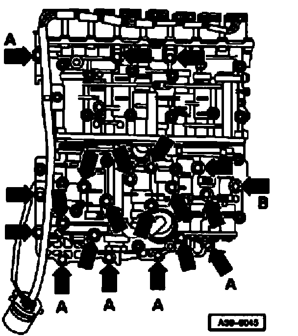 Attached to the valve body are solenoid valves and pressure regulating valves -N88, -N89, -N90, -N215, -N216, -N217, -N218 and -N233.