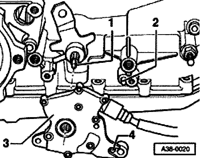 - Turn switch until installation hole-4 on switch housing can be inserted onto dowel pin -2- of transmission housing.