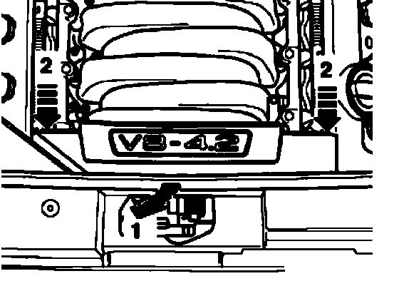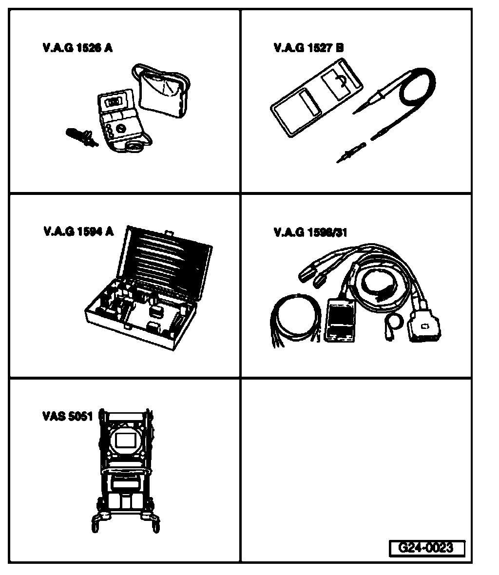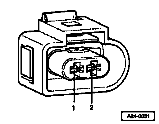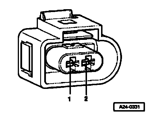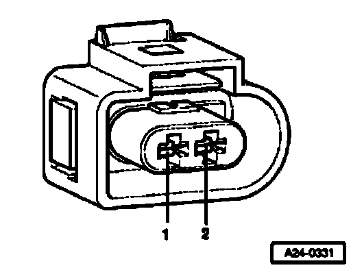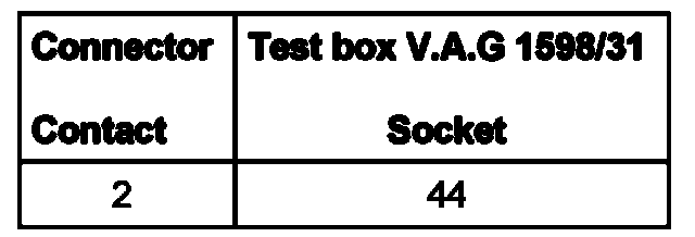 - Connect up voltage tester V.A.G. 1527 B between contacts 1 and 2.