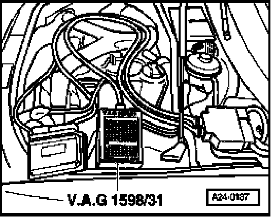 - Connect test box VAG1598/31 to the circuit harness connector; do not connect the ECM.