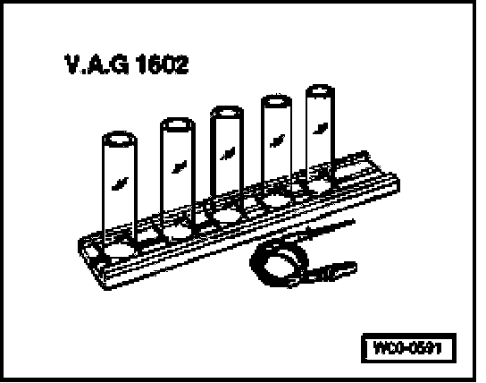- Place injector which is to be tested into a measuring glass from injection quantity tester V.A.G 1602.