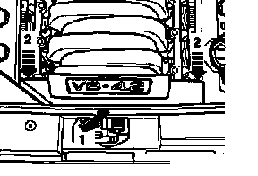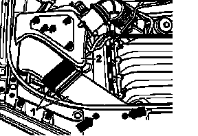 - Remove front engine cover (arrows -1- and -2-).