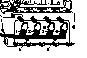 - Remove bolts -5- and -6- at left cylinder head.