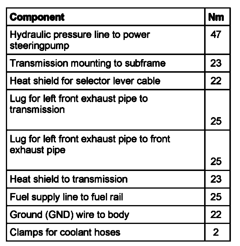 Tightening torques