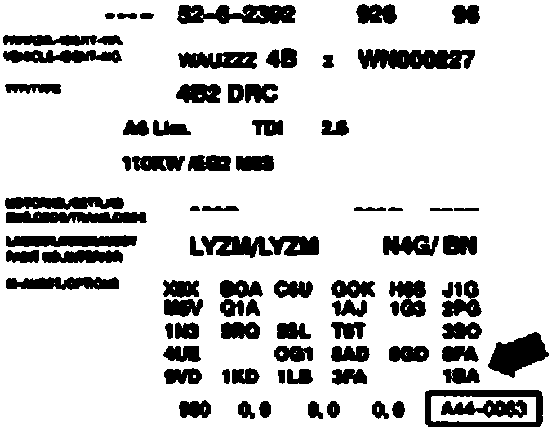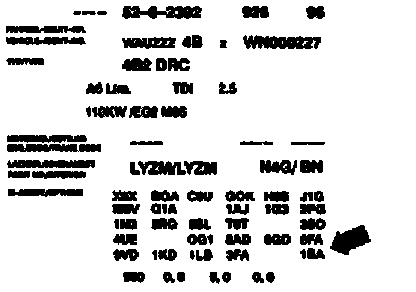 Example of a vehicle data sticker
